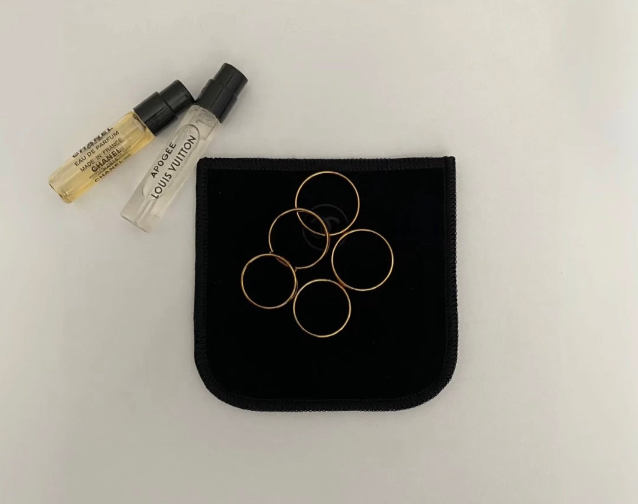 - Store properly: When not in use, store your jewelry individually in a cool, dry place like a velvet lined jewelry box or PVC jewelry bag (all orders come with a specialty Sanaa. jewelry bag) to prevent oxidation and scratching.