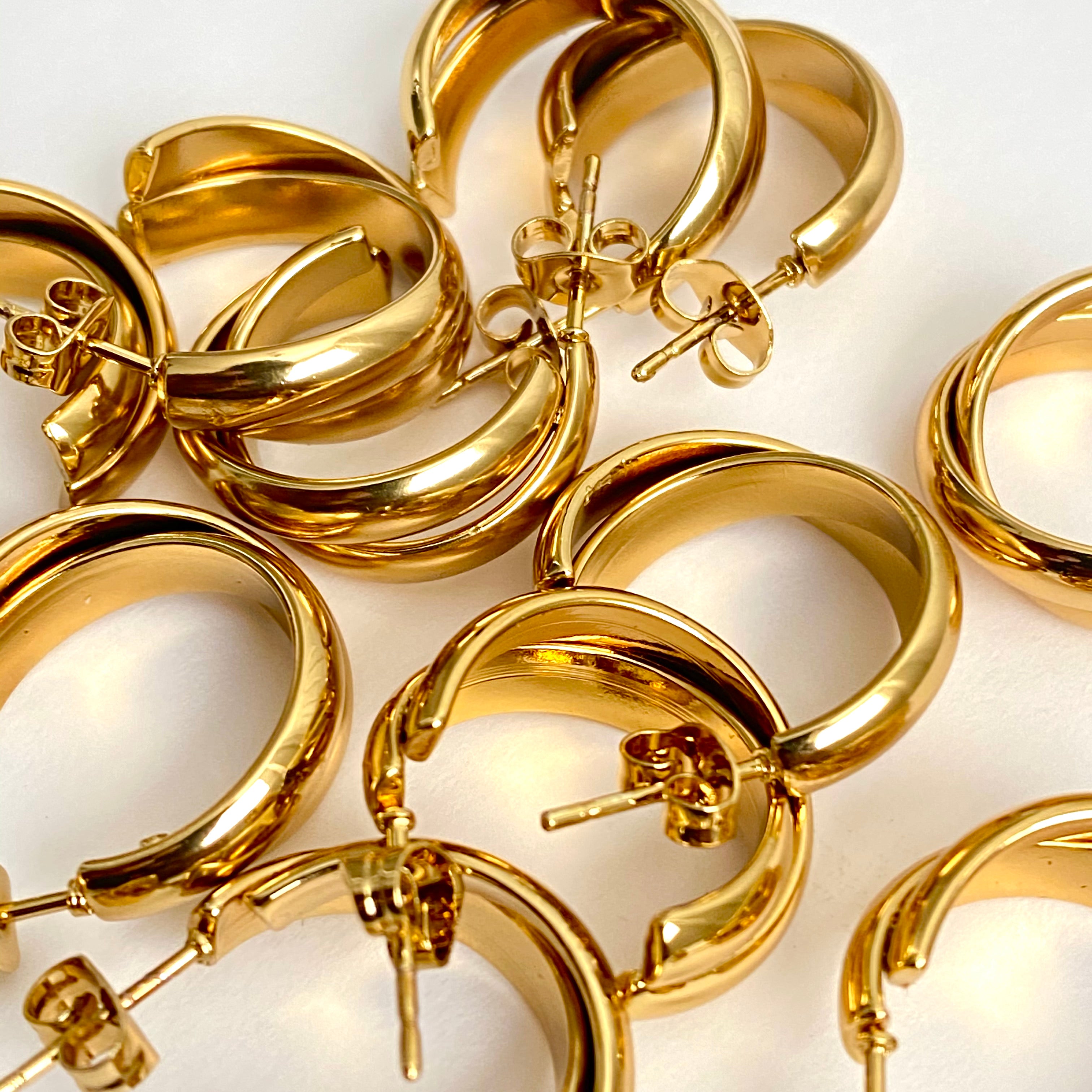 Gold plating is a process that involves applying a thin layer of gold onto the surface of another metal (in our case stainless steel or sterling silver) through electroplating. The gold layer measures to be just about 0.01 to 0.03 micrometers in thickness. Despite the thinness of the gold layer, there is definitely a real gold presence left on the jewelry.